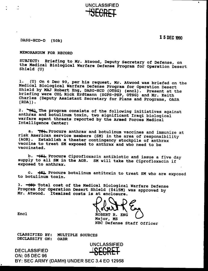 Document 12 f:/Week-36/BX003203/BRIEFING TO MR. ATWOOD DEPUTY SECRETARY OF DEFENSE/briefing on medical biological warfare program:12179609285353