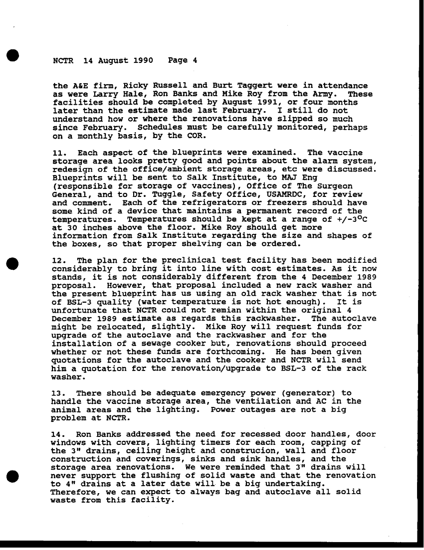 Subject = TOXICOLOGICAL RESEARCH VACCINE STORAGE AREA