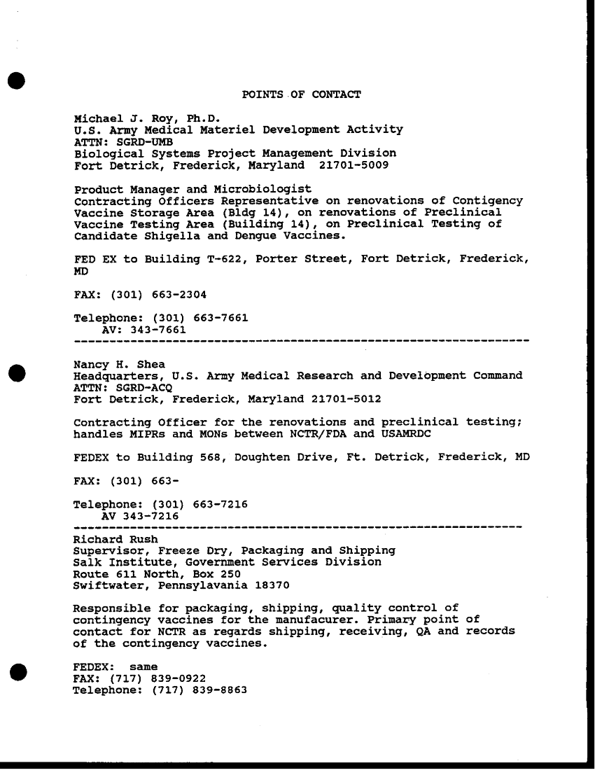 Subject = TOXICOLOGICAL RESEARCH VACCINE STORAGE AREA
