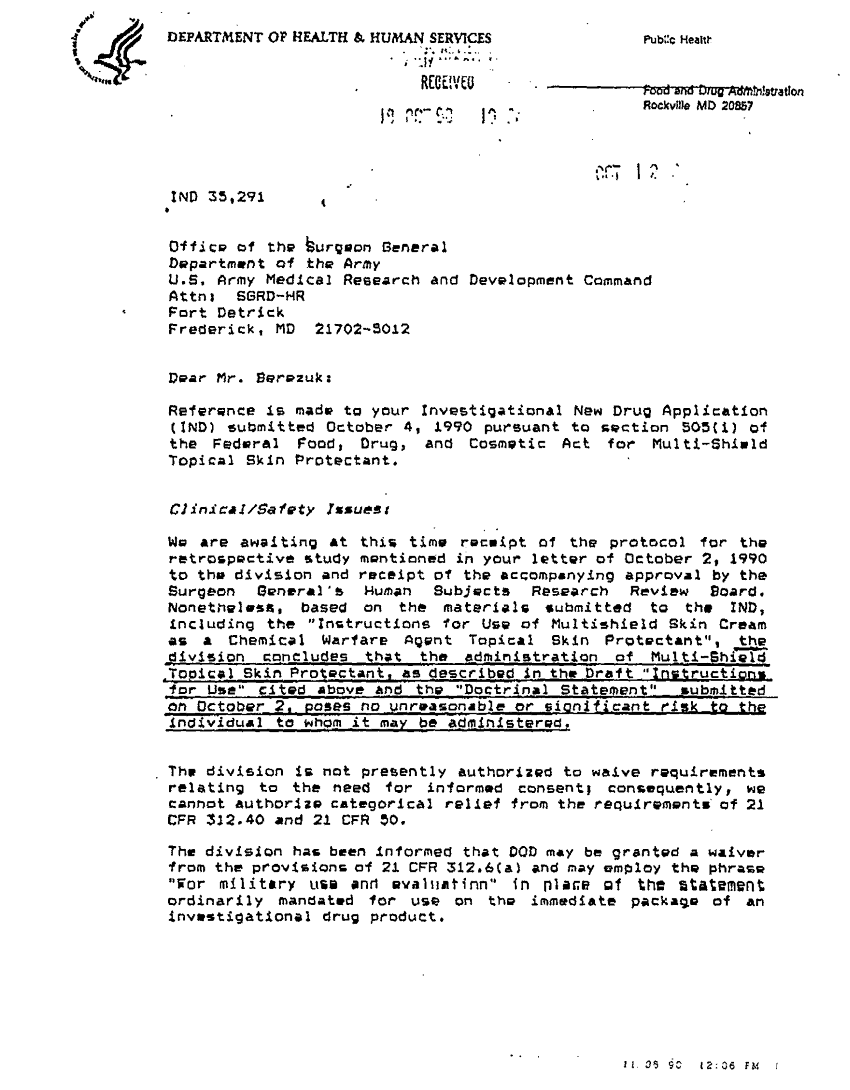 Folder Title = USE OF CHEMICAL WARFARE AGENT TOPICAL SKIL PROTECTANT