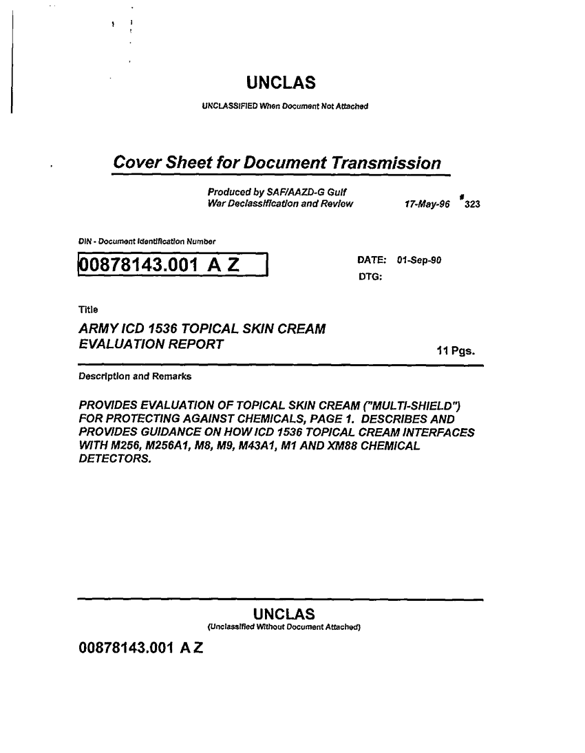 Document 12 f:/Week-36/BX003205/USE OF CHEMICAL WARFARE AGENT TOPICAL SKIL PROTECTANT/cover sheet for document transmission:12249609312320