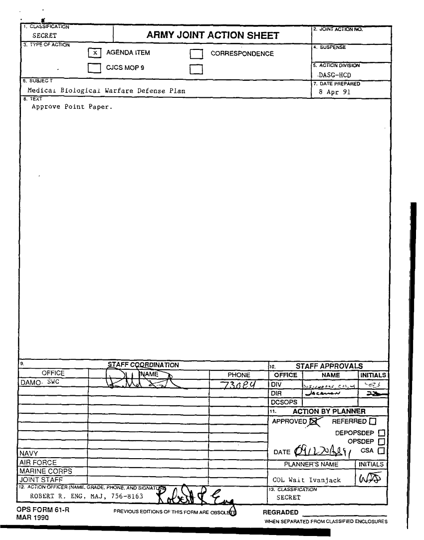 Document 194 f:/Week-36/BX003202/MEDICAL BIOLOGICAL WARFARE - BW- DEFENSE PLAN/medical bio warfare defense plan 8 apr 91:1224960931152