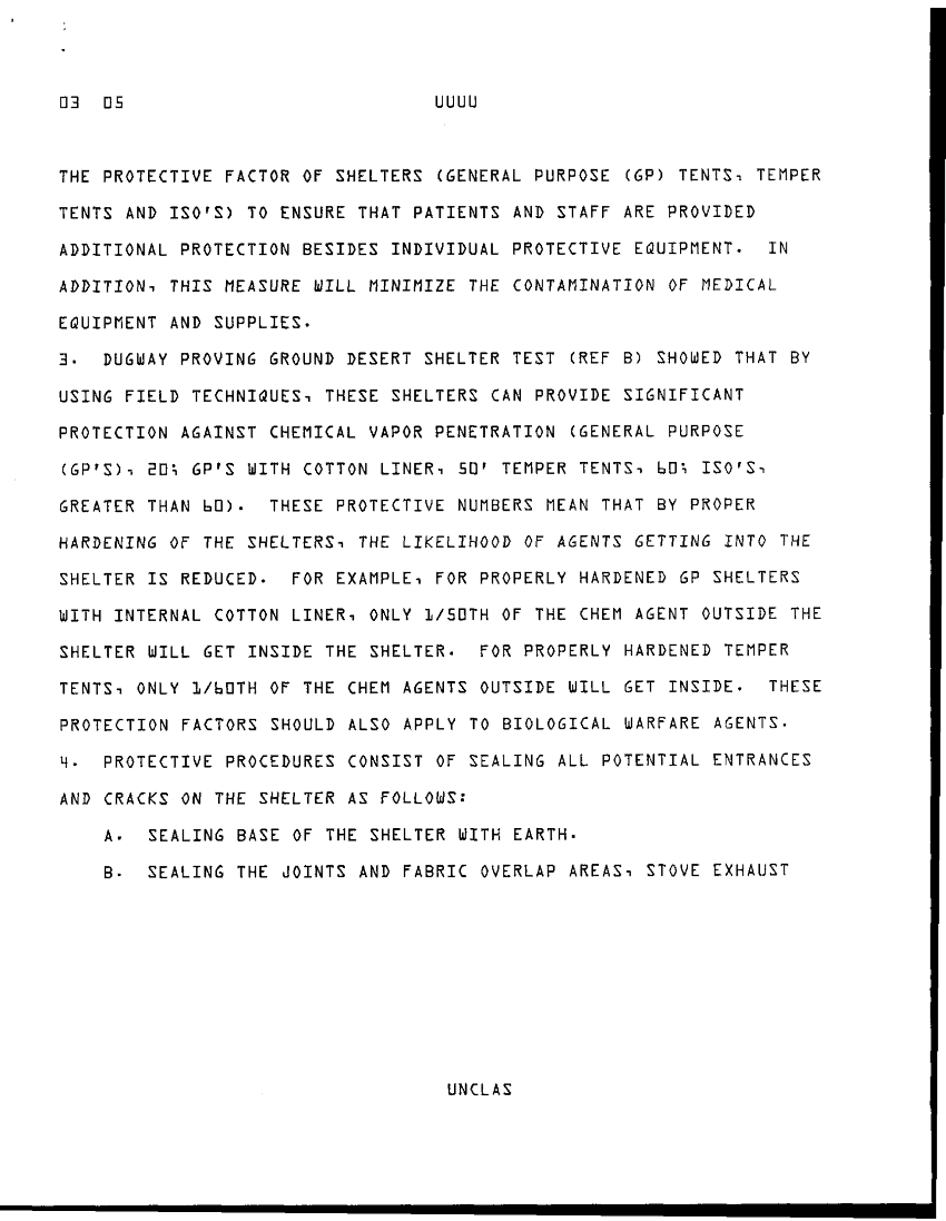 Subject = SHELTER PROTECTION AGAINIST CHEM BIOLOGICAL WARE