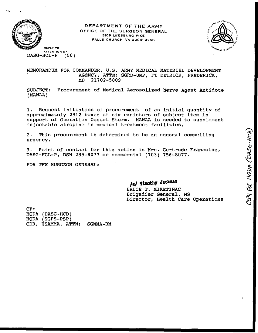 Document 2 f:/Week-36/BX003201/CRITICAL DESERT SHIELD FUNDING NEEDED BY 3 JAN 91/procurement of diazepam auto injectors:12249609313749