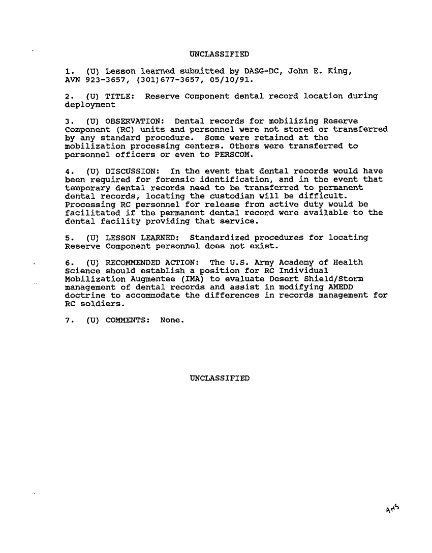 Folder Title = OTSG OBSERVATIONS AND LESSONS LEARNED