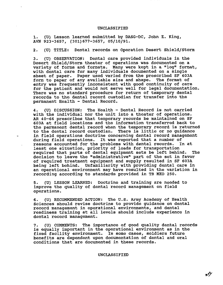 Folder Title = OTSG OBSERVATIONS AND LESSONS LEARNED