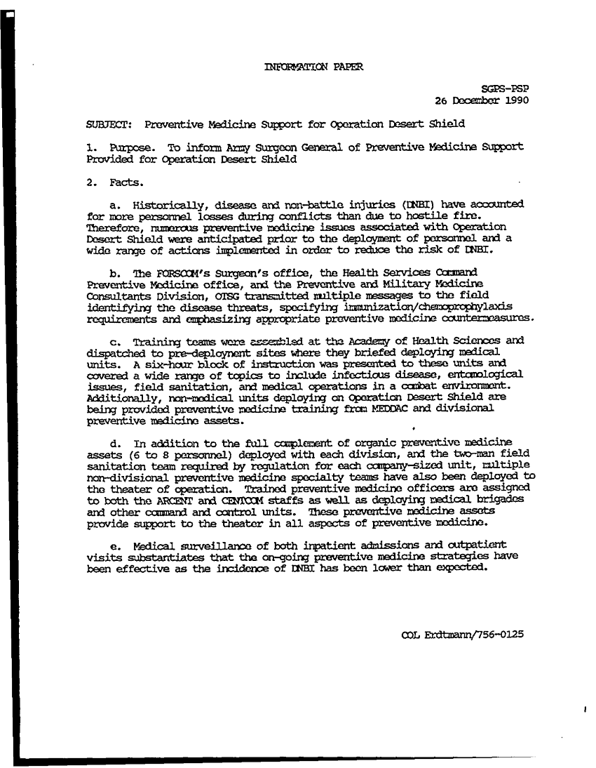 Document 1 f:/Week-36/BX003205/INFORMATION PAPERS/preventive medicine support for operation shield:0102971547013