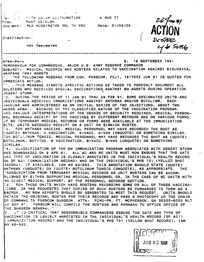 Subject = MED RCDS AND ROSTERS RELATED TO VACC AGAINST BW