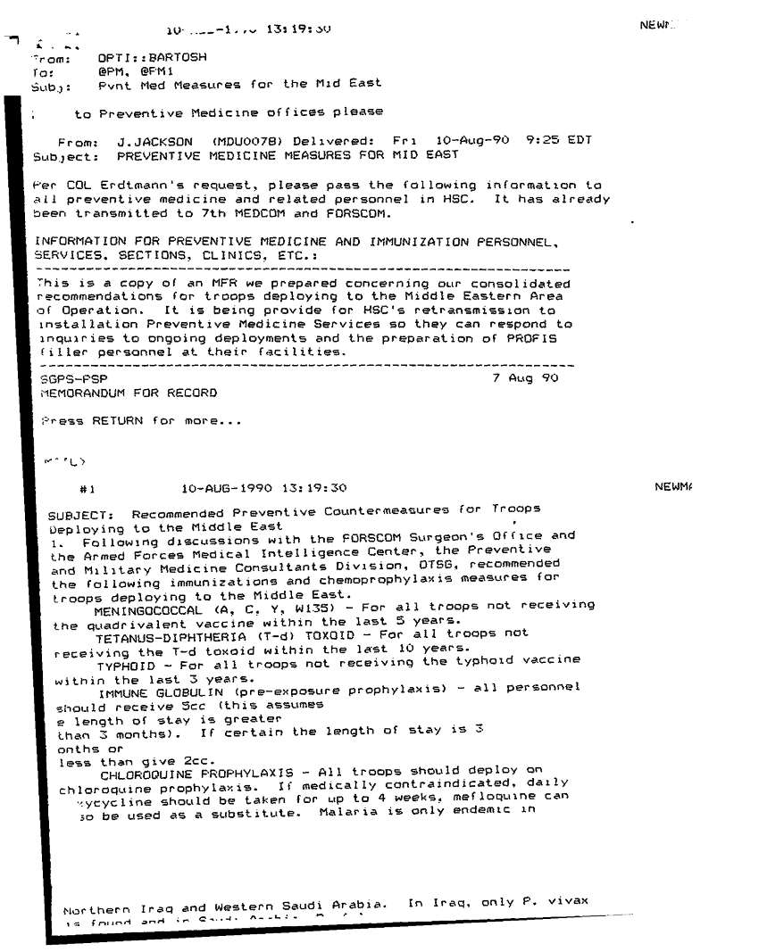 Subject = PREVENTIVE MEDICINE MEASURES FOR THE MID EAST