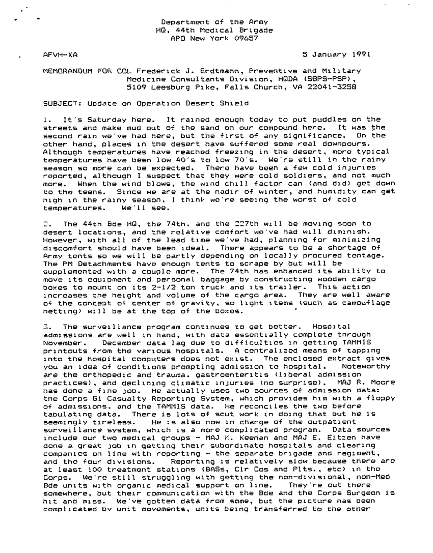 Subject = UPDATE ON OPERATION DESERT SHIELD 5 JAN 91