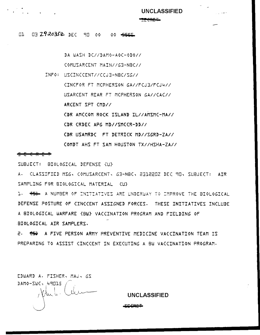 Subject = COVERSHEET BIOLOGICAL DEFENSE