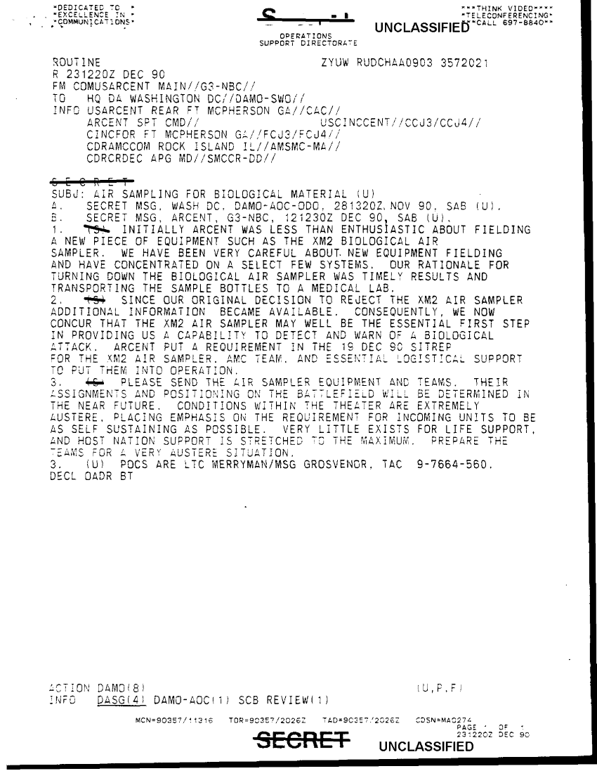 Subject = COVERSHEET BIOLOGICAL DEFENSE